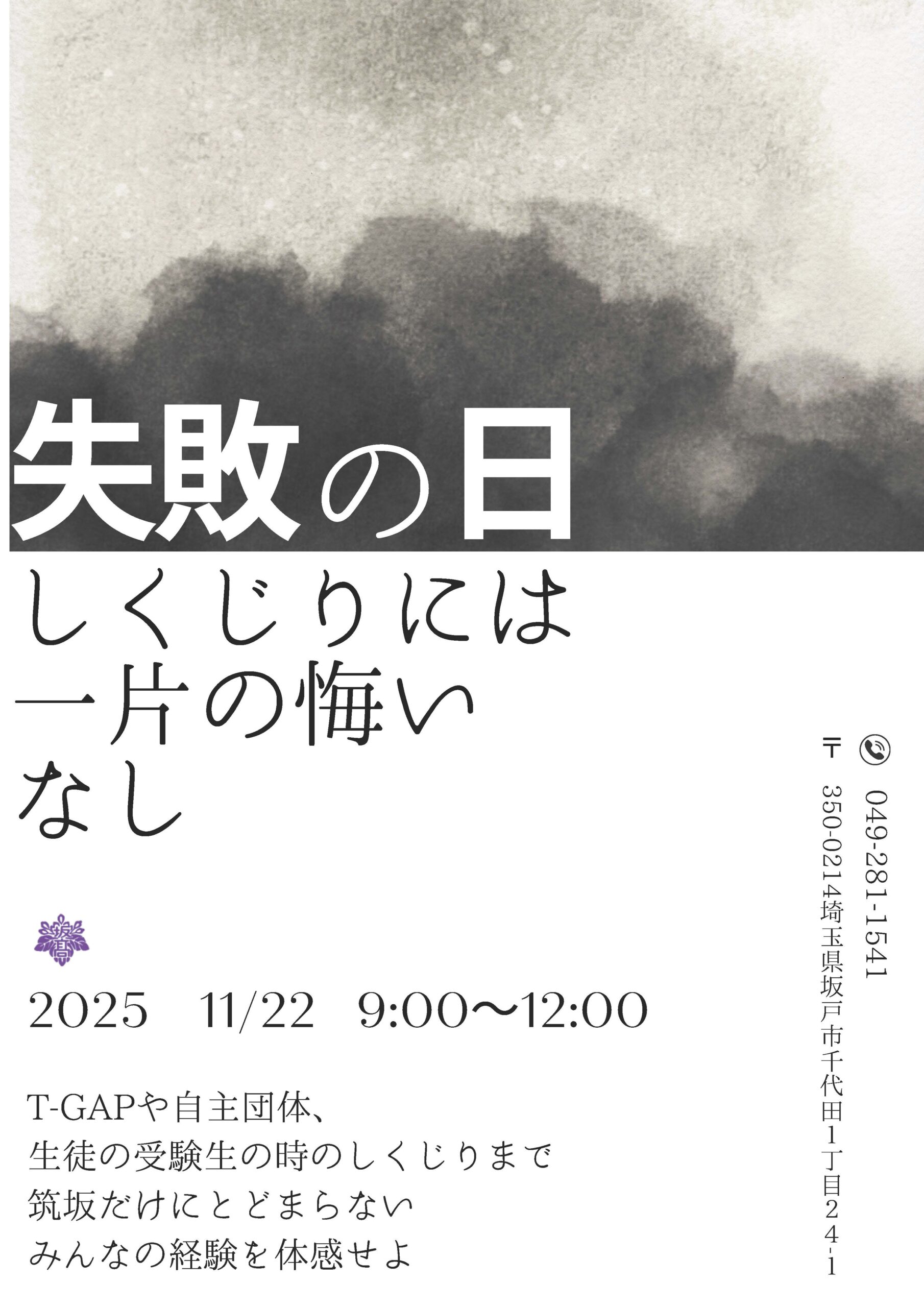 - 【中学生向けイベント】11/1(土)「自主活動紹介(生徒広報委員会&TSAC合同開催)」と「親子別説明会」