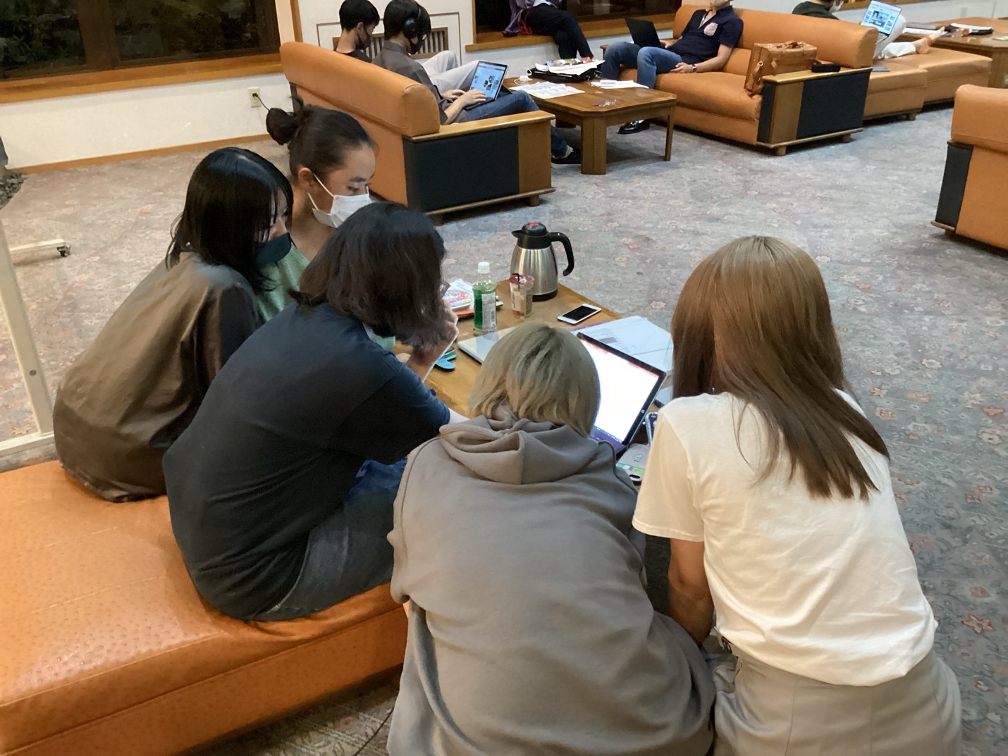午後は班ごとにタクシーで笛吹の街を取材。この三日間で学んだことをもとに、明日は地域おこしのプレゼンです。準備のために、各班とも今夜は大忙しです。