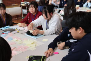 後半では、キャンプを通じて気づいたこととして、学んだことや自分の課題について考え、活動班の仲間と共有しました。
