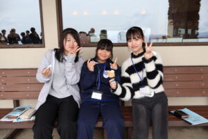 清泉寮を出発前のお土産タイムでは、多くの生徒がソフトクリームを堪能していました。