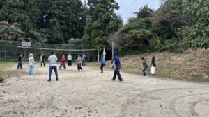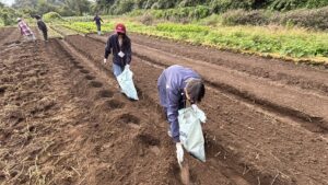 2泊3日の研修のまとめとなるこの日も、朝のラジオ体操とフードライフワーク(ファームワーク)からはじまりました。4つのグループに分かれ、パティシパントたちと野菜の収穫をしたり、冬野菜の定植をしたりしました。