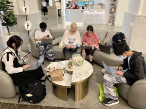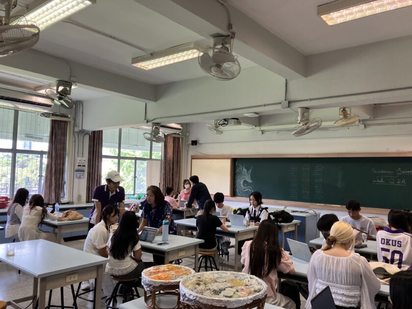 駅での待ち合わせの後には送迎車で移動できるほどの広大な敷地を誇るカセサート大学に驚きながらも、発表準備に入ります。今日はカセサートの男子生徒は軍事訓練のため不在で、残るメンバーで発表資料の完成をしなくてはならず、限られた時間かなり集中して取り組んでいました。