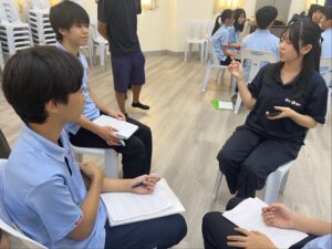 高校生からは進路選択における自身の経験について話すとともに、高校生活について紹介し、寄せられた質問に答える一方で、中学生からは海外で暮らすことの意味や文化の違いに関する考えを共有してもらいました。