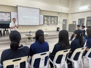中学部教務主任の関野先生より「海外で働くこと」をテーマにご講演をいただきました。一人の大人のキャリアをたどりながら語られるお話は示唆に富み、生徒たちは熱心に耳を傾けていました。研修の締めくくりとして、キャリア形成について深く考える契機をいただけたことに、心より感謝申し上げます。
