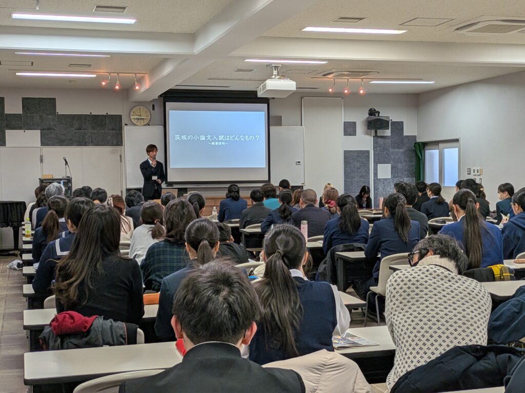 〇在校生の、小論文、面接対策のお話が聞けてとても良い勉強になりました。また、在校生の志望理由や、校則に対する考え方、それぞれの生徒に芯があり筑坂に入りたいという気持ちが強くなりました。