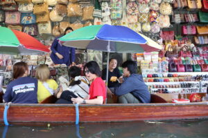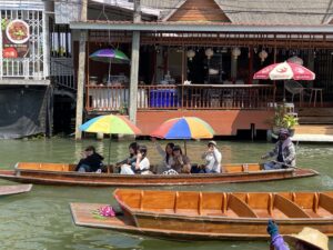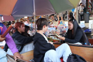 午前はダムヌン・サドゥアック水上マーケットを訪れ、実際に船に乗りながらショッピングをしました。