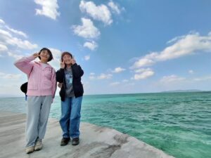 伊古桟橋は、透明度抜群の海に伸びる桟橋。絶景のフォトスポットです。