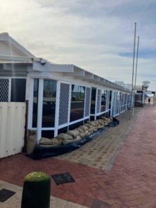 本日は天候を考慮し、安全を最優先として2日目の海洋実習を取りやめました。朝一番に桟橋で船員クルーの方々とお別れの挨拶をし、生徒たちはそこでも熱心にインタビューの続きを行っていました。街では土嚢を積んだり船を引き上げたりと、自然の脅威に備える現地の人々の対策が見られました。