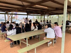 海洋実習に代わり、シャークベイ博物館の見学ではこれまでのオンライン研修で学んだ内容が実際に展示されており、さらに学びを深めることができました。その後は早めにランチを済ませて、お昼前にはデナムからジェラルトンへ向けて出発しました。
