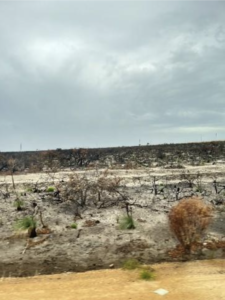 長時間のバス移動となりましたが、車窓からはブッシュファイア跡地が広がり、火災を経て新しい木々が芽吹く、大自然のたくましい再生サイクルを観察できました。また、野生のカンガルーやエミューの姿も見ることができ、オーストラリアの自然の豊かさを感じる道中となりました。
