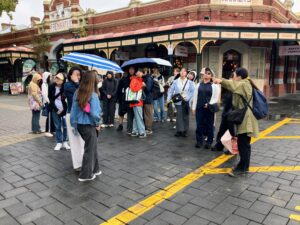 本日のパースは風もなく、少し小雨がありましたが涼しくて穏やかな朝を迎えました。日程を1日前倒ししたことに伴う追加プログラムとして、午前中は歴史情緒あふれる港町・フリーマントルへ足を延ばしました。