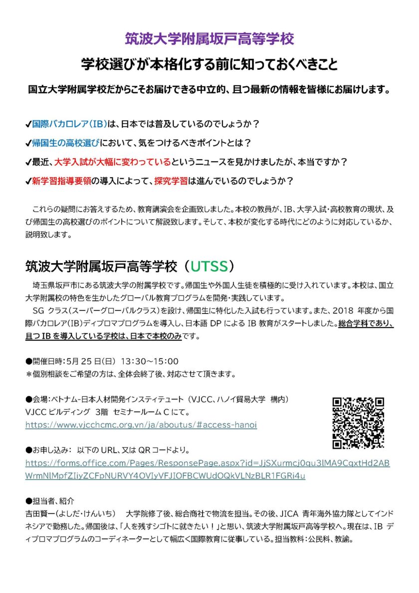 【受験生向けイベント】5/25(日)ハノイにて教育講演・学校説明会を開催