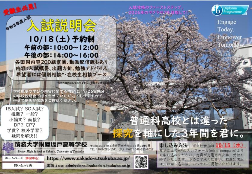 【受験生向けイベント】10/18(土)R8「入試説明会」開催のお知らせ