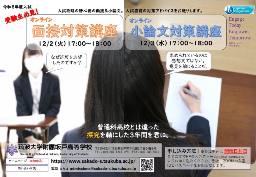 12/13(土)開催の生徒広報委員会主催「面接&小論文対策ゼミ」(来場型)、